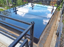 Укрываем внутреннюю зону участка геотекстилем и приносим три массивные прямоугольные плиты, которые в дальнейшем послужат наземным покрытием могилы.