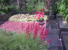 Гранит, крошку помыли. Цветник и можжевельники почистили от сорняков. Цветы и вечнозелёные полили. Могила в полном порядке.