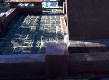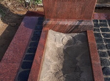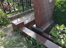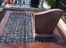 Облицевали бетон полированным гранитом, на территорию участка уложили брусчатку, предварительно приподняв памятник.