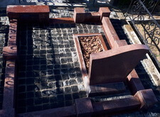Сначала мы разбираем гранитный цоколь, разбиваем находящийся под ним бетон. В получившуюся траншею укладываем арматуру, по периметру участка возводим опалубку.