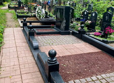 В данном случае клиент заказал нам полную уборку места захоронения. На могиле не убирались продолжительное время, поэтому территория участка была покрыта оставшимися с осени листьями. В цветнике, на земле, а также в швах между плитками брусчатки начала пробиваться сорная трава.