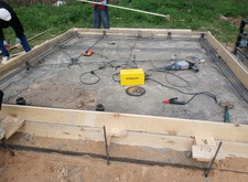 Далее началась постепенная заливка бетоном, в процессе который была вварена ещё одна арматурная сетка.