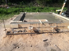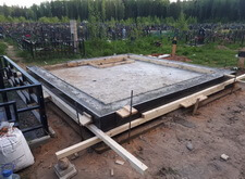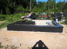 В одном из углов участка специально оставлена прямоугольная ниша. По периметру места захоронения залили опалубку, немного возвышающуюся над основанием.