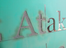 Следующий элемент мемориальной композиции – раскрытая книга. Процесс создания такой же, как и у арки: сначала буквы гравируются пескоструйной машиной, затем грунтуются, и только после этого надпись покрывается клеем и наносится сусальное серебро.