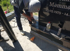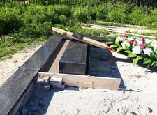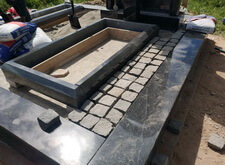 Снова возвращаемся к могиле. Устанавливаем подставку, на которой будет размещён памятник, цементируем.