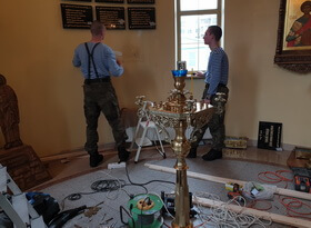 В день монтажа мы доставили готовые таблички в храм, предварительно сняв со стены висевшую там мраморную доску.