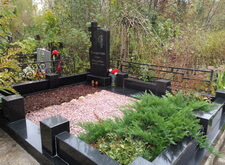 Гранит помыли, цветы в цветнике убрали, закрыли землю корой, могилу почистили от опавшей листвы. Могила снова в полном порядке.