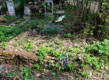 В процессе уборки мы: по мере сил вычистили место захоронения от лишней зелени; удалили сорную траву вокруг участка; обрезали разросшийся кустарник в углу могилы; протёрли надгробную плиту и отдельные элементы оформления наземного покрытия.