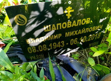 Дождавшись, пока брусчатка высохнет и надёжно застынет, мы привели в порядок памятник: наклеили изображение усопшего на фотокерамике, а также покрыли надписи на памятнике специальным проявляющим раствором. Пришедший на могилу клиент остался очень доволен результатом благоустройства, а потому оставил положительный отзыв.