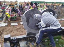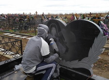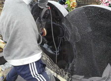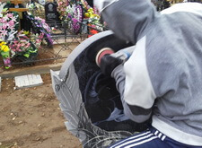 Далее мы полностью заполировали старый портрет и всю надпись, сделали это прямо на кладбище, не перемещая сам памятник.